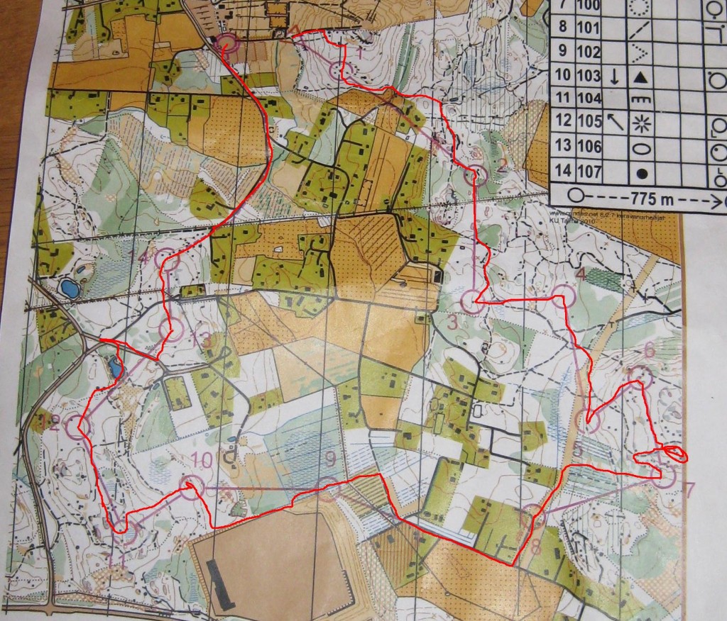 No, paluumatkalla sitten suunnistamaan Keravalle. Keski-Uusimaa rastit ja paikkana Talma. Kartta ja piirros alla. Ai niin, ikävä kyllä unohdin Garminin kotiin ja joutusin (turkua) piirtämään reitin “käsin”.